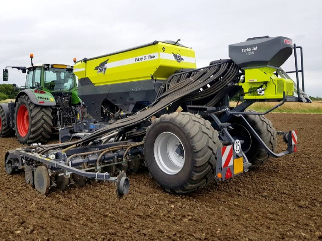 | Trémies : 240 L ou 400 L Agitateur de série Kits pour petites semences, grosses semences, granulés Kit de distribution/épandage en option Largeur de travail : jusqu’à 15 m avec ventilateur hydraulique. Vitesse réglable avec les systèmes de contrôle : I-Con et Jackal (voir le menu systèmes de contrôle) |